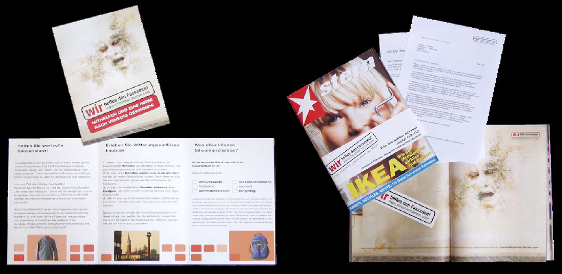 Instead of trying to drive through a mini Intel-Inside campaign without budget for Wacker’s silicone material used in paints, Wächter recommended the founding of an initiative with the name “We help the facades”. We turned this into a brand. We used a website that became the central knowledge database of this painting product category, gained thought leadership worldwide in more than 20 languages, united all manufacturers of facade coatings to contribute to this website and achieved with a creative and integrated campaign double digit sales increases every year that outreached all expectations.