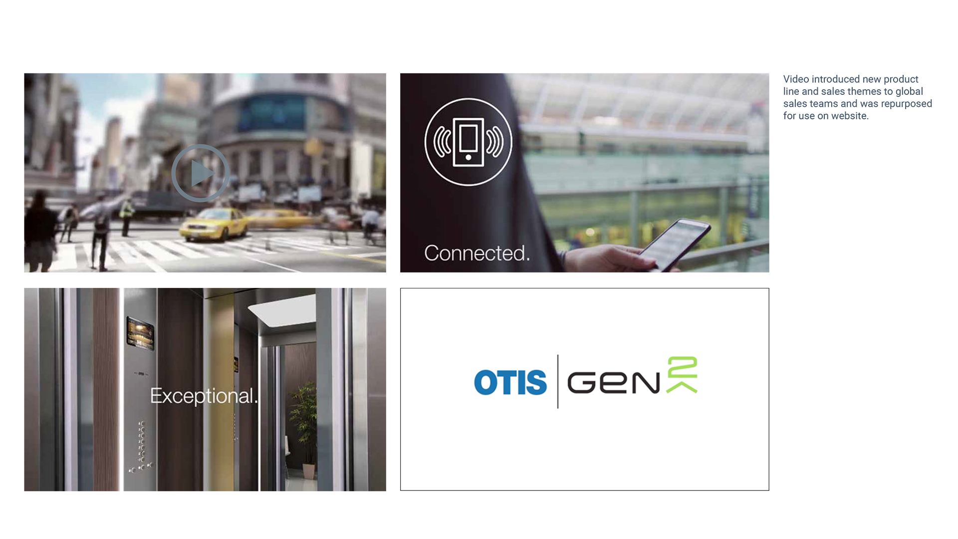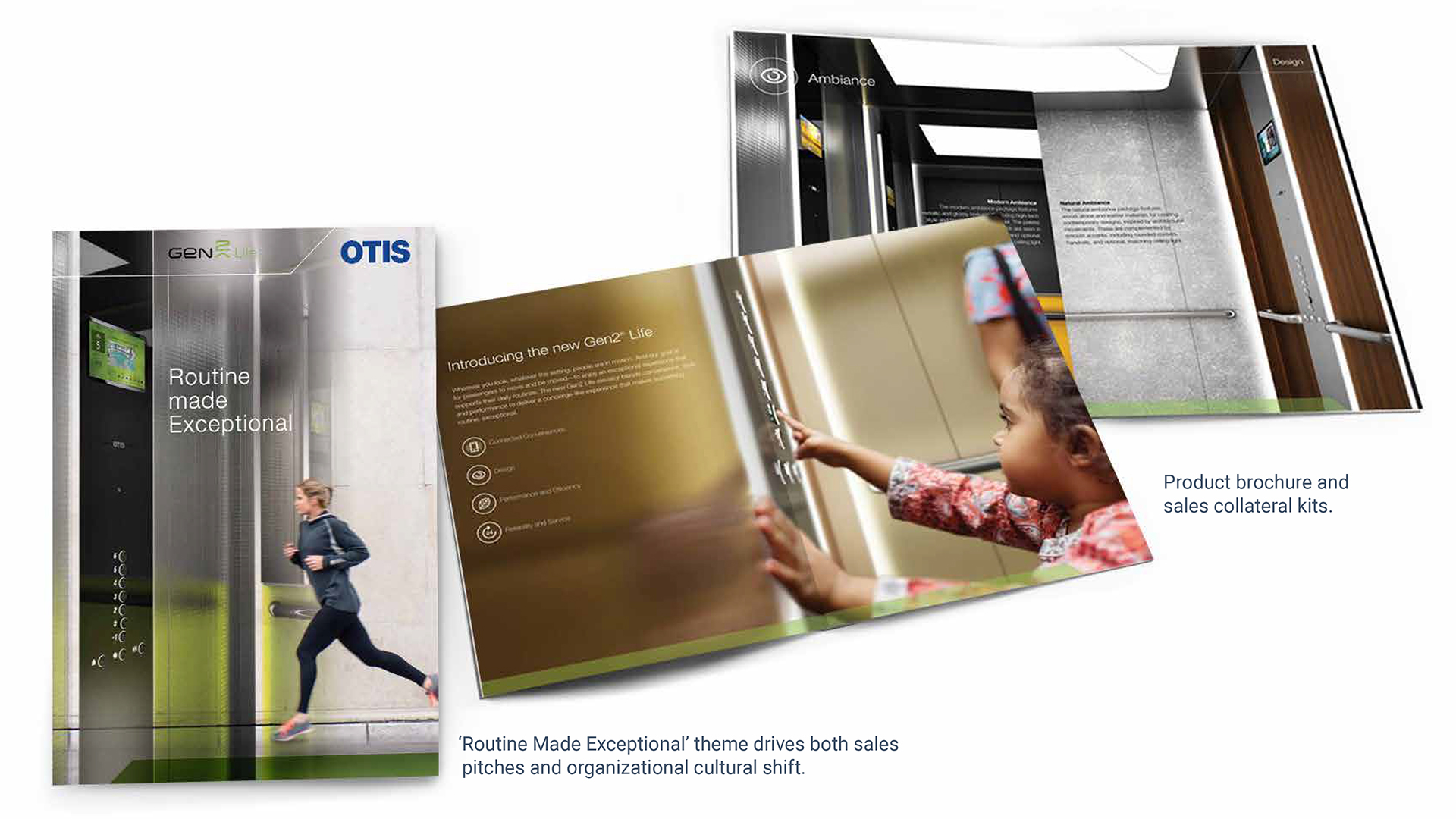 OTIS refocused its marketing to building owners who were concerned with enhancing their own brand. Sales materials, trade show activations and a powerful launch showcased the OTIS Gen 2’s game-changing technology and design, creating a lifestyle brand for a global market.