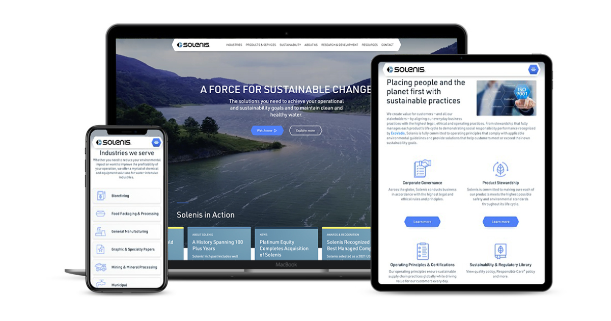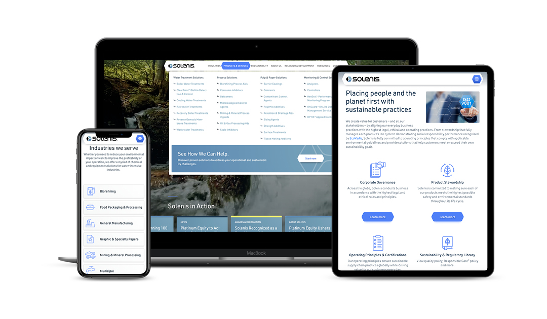 Building a Versatile, ESG-Driven Web and Brand for Solenis In redesigning the Solenis website to meet their digital marketing needs, they would also need to refresh their brand expression to meet shifting market demands. Solenis chose Godfrey to move the project from concept to completion.
