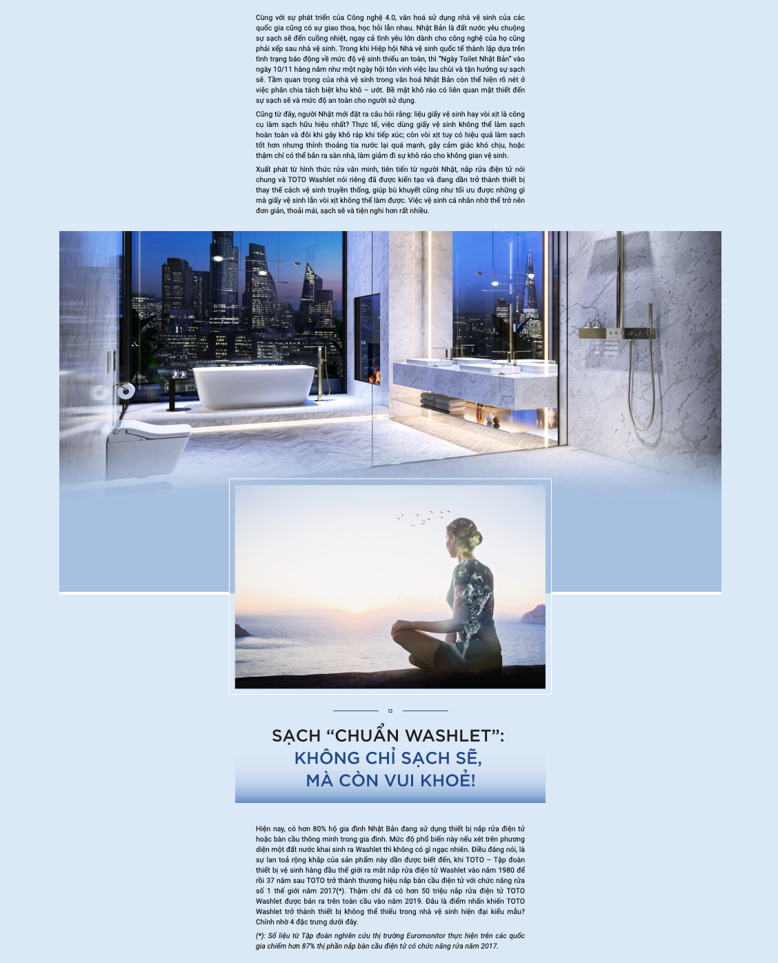 TOTO is a leading Japanese sanitary ware brand, present in more than 70 countries and has 20 years of operation in the Vietnamese market. 2022 marked the 20th year TOTO has been present in Vietnam, bringing a comfortable and convenient cleaning experience, enhancing the aesthetic of bathroom space for Vietnamese people.