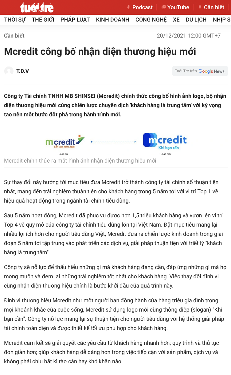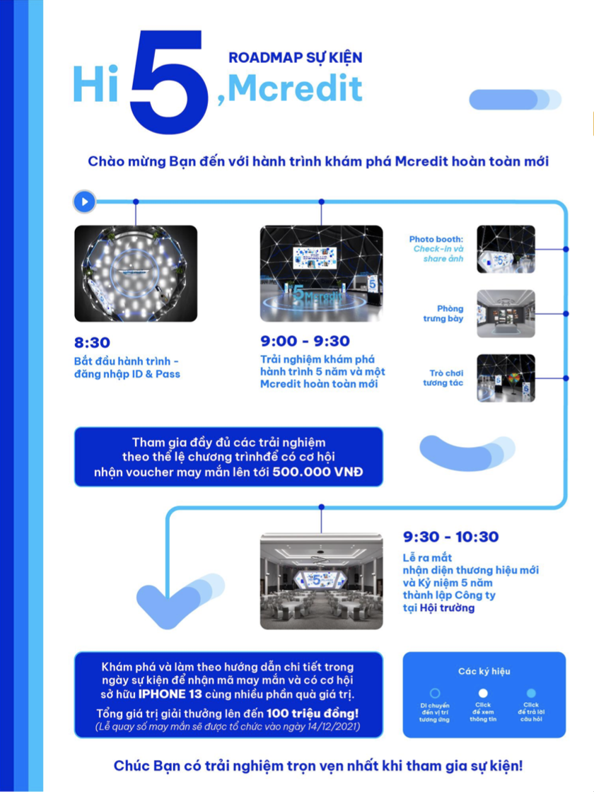 - Building a brand positioning strategy for Mcredit - Developing and implementing communication strategy for Mcredit - Designing MCredit's brand identity - Organizing the launching event of the new brand identity - Producing the "5-year journey" video and the new brand logo introductionn video. - Organizing the hybrid launching event of the new brand identity for Mcredit