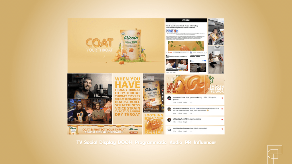 Ricola had established a new “Everyday Care” position outside the Cough & Cold season for daily throat and voice care in the US. In launching Ricola Throat Balm, we needed to give the new product and usage occasion a purpose. With “Coat Your Throat”, we made Ricola’s first ever 3D Animated spot to bring the category-defining ingredients to life and built the brand’s first fully integrated 3-tier influencer program, including YouTube celebs like Harry Mack and Good Mythical Morning. All leading to being the #2 new item in the category.