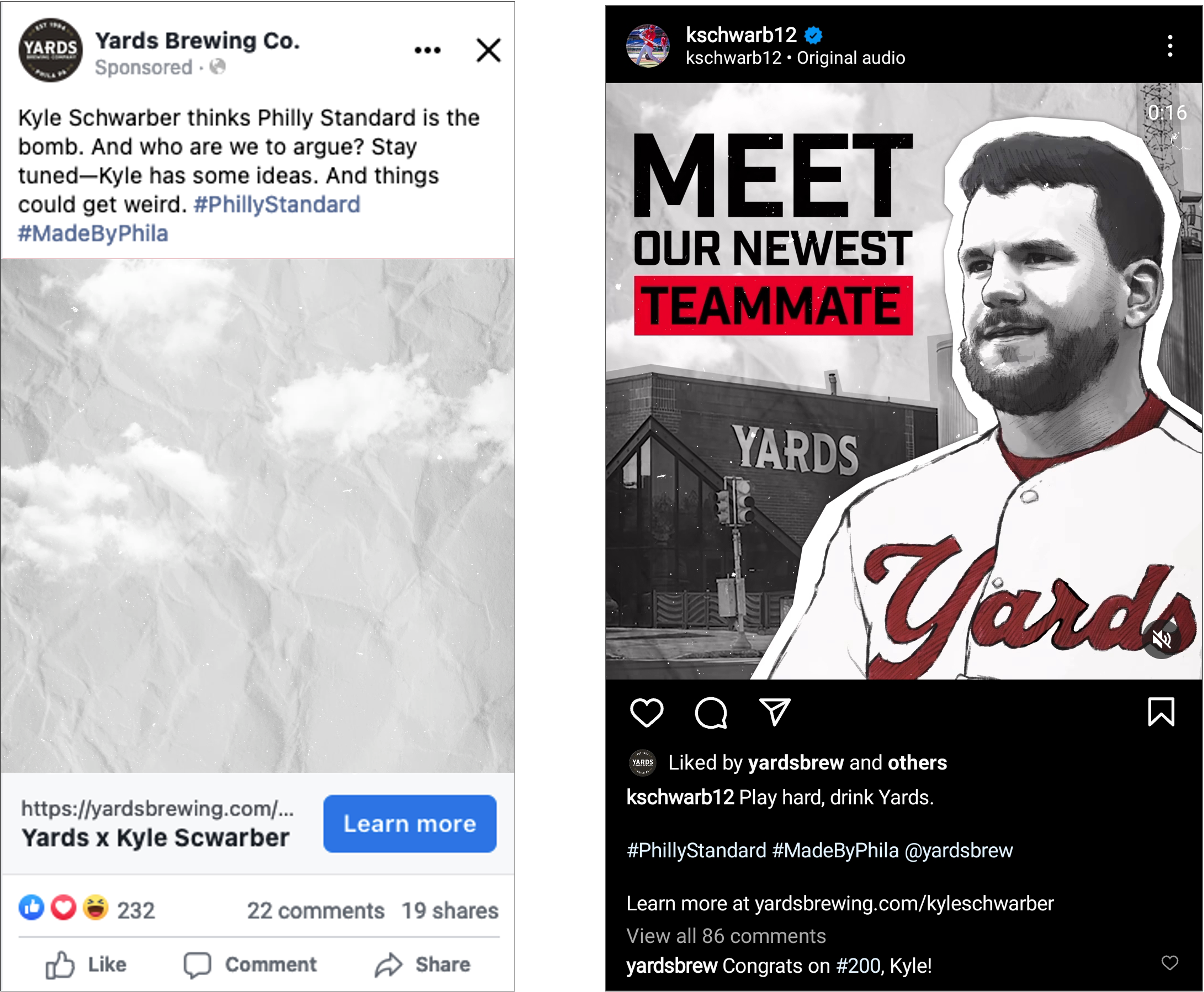 Yards Brewing Company knows sometimes Philly just wants a beer. No bells. No whistles. Just a good, handcrafted, no-nonsense beer that works just as hard as Philly does. So it created Philly Standard in 2021, but sales were lackluster at a time when the Phillies were red hot. In 2023, we recognized an opportunity to partner with Phillies’ top slugger Kyle Schwarber to bring alive the spirit of the beer: play right, work hard and have fun.