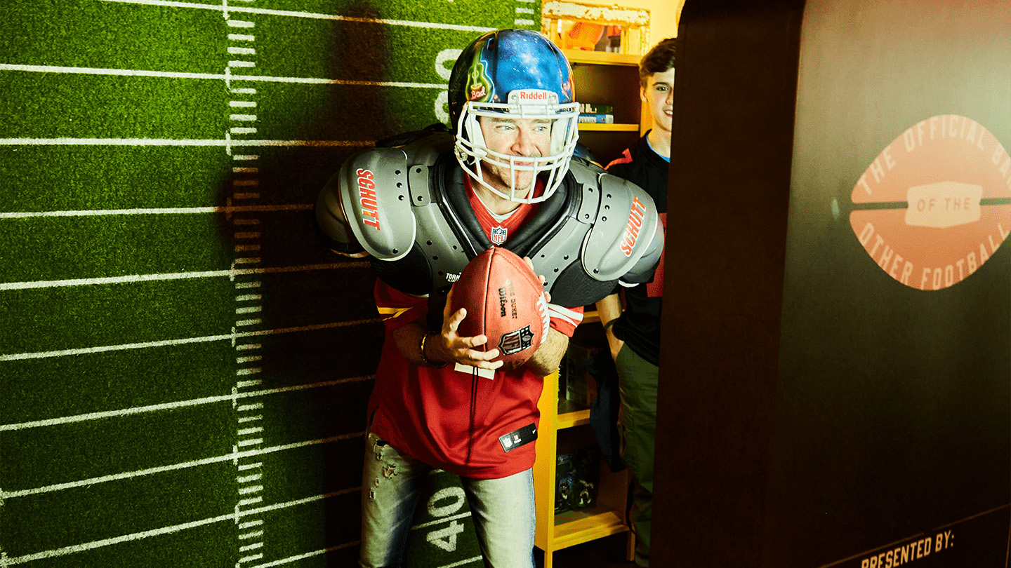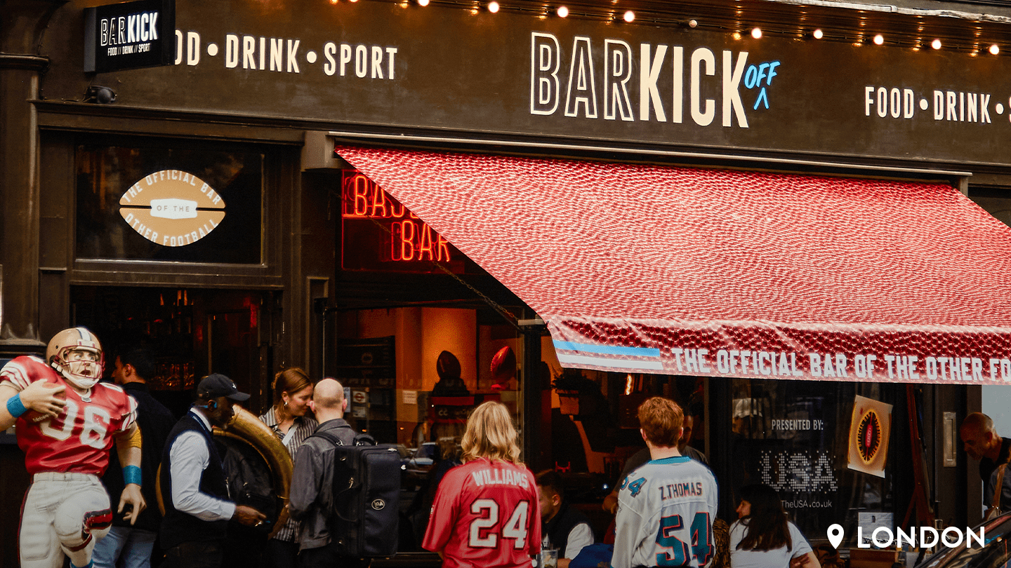 We flipped two sports bars, one in Frankfurt and one in London, and completely transformed the atmosphere into immersive, vibrant travel bars dedicated to the “other football.” The event offered a photo booth, airbrushing destination jerseys, typical American marching bands, and a menu offering local food from the NFL destinations.