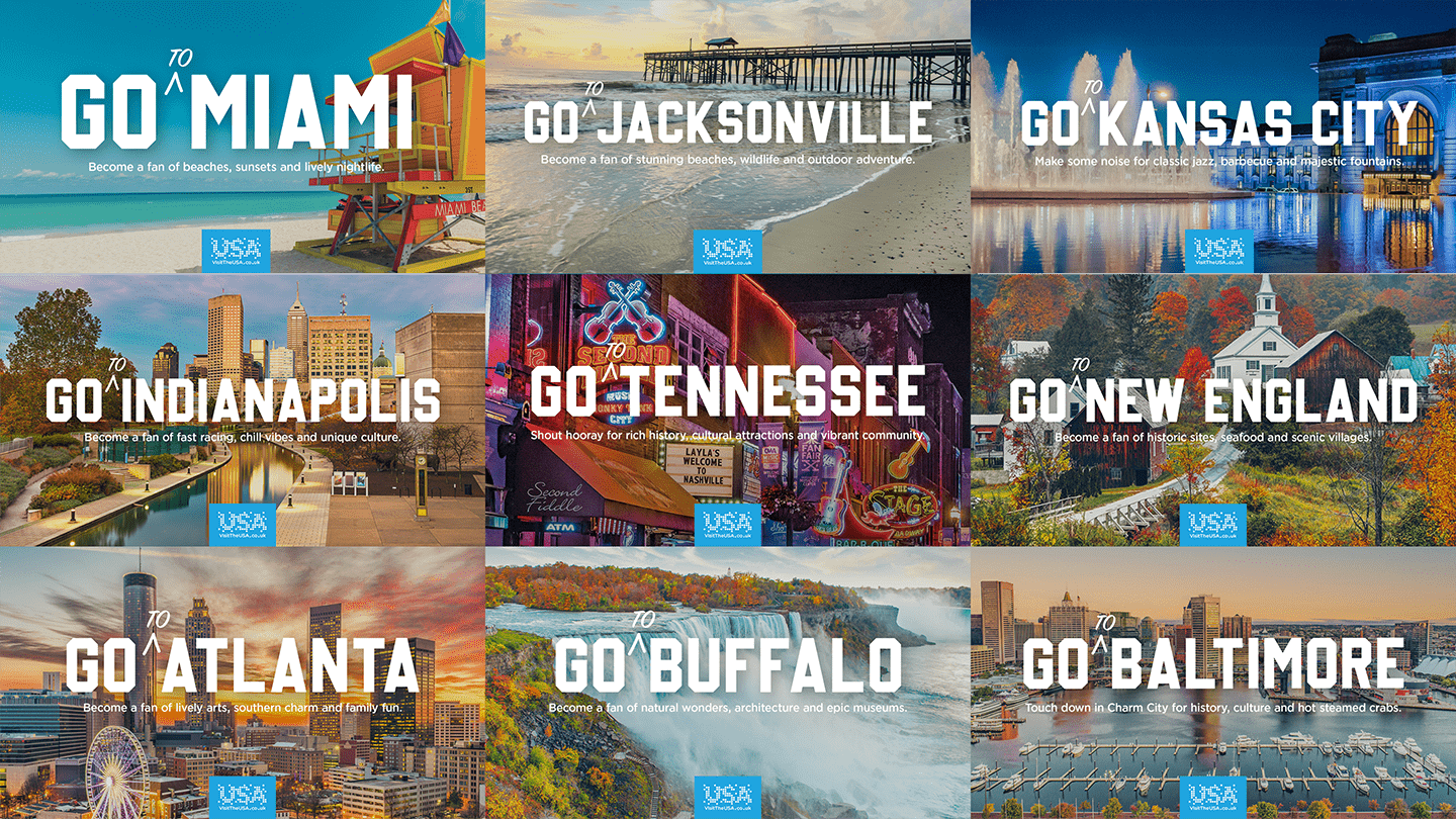 The 'Become a Fan' campaign seamlessly blended the tourism realm with the language and passion of sports, celebrating all the diverse experiences America offers its fans. This 360 campaign spared no effort, featuring TV spots, billboards, print ads, influencer collaborations, sports bar activations, and even a personalized craft beer pack to be savored during the game.