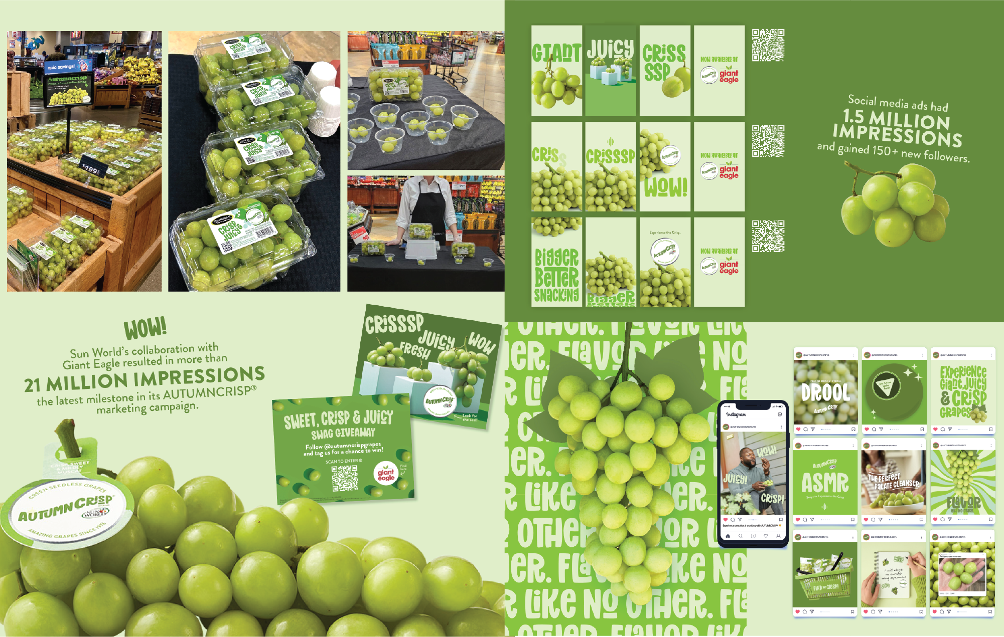 Sun World International is a global fruit variety development and licensing business whose network of growers allows for the year-round availability of rising produce stars like AUTUMNCRISP® brand grapes. As an industry leader, Sun World aimed to transform the table grape category when it comes to branded product. Together we set a goal to drive awareness and demand for the AUTUMNCRISP® brand with a uniquely memorable marketing campaign for a global audience.