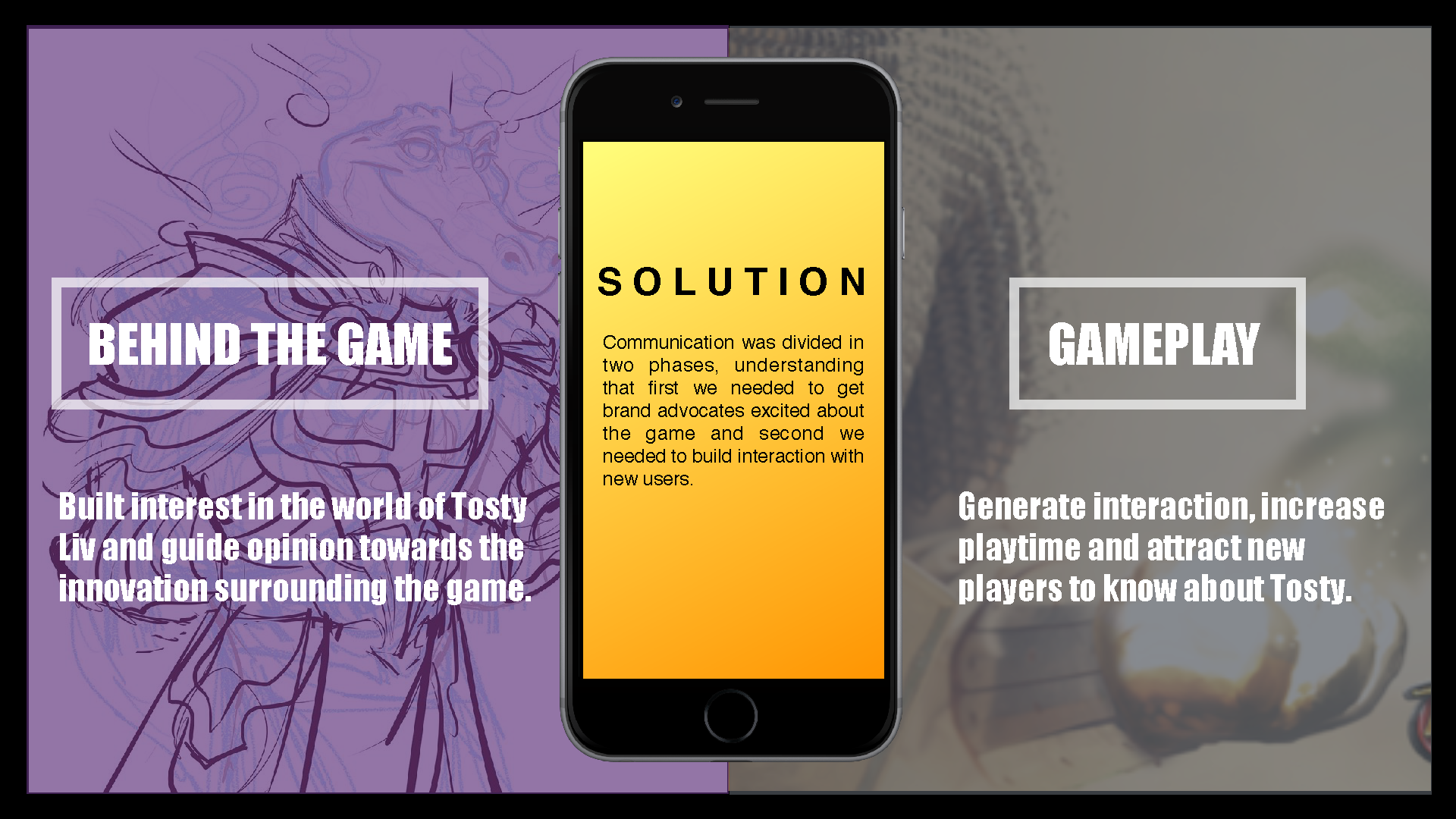 The game was made available for free within app stores. To advance and win the game, users would have to level up with armours and weapons that were only available inside of Tosty’s personal size snacks.