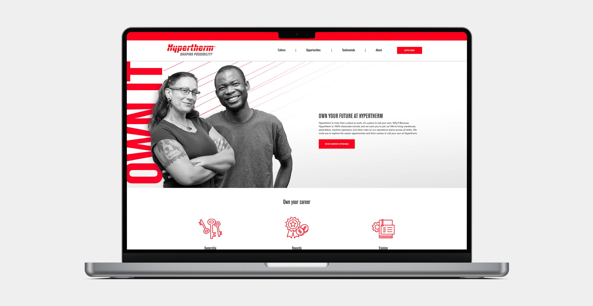 Hypertherm Associates does things differently. It’s a company that’s 100% owned by its Associates, and that’s a big deal. So, we made their recruitment campaign a big deal. The graphics are bold, the copy is tight, and the message is clear: work for Hypertherm Associates, and you’ll own your future.